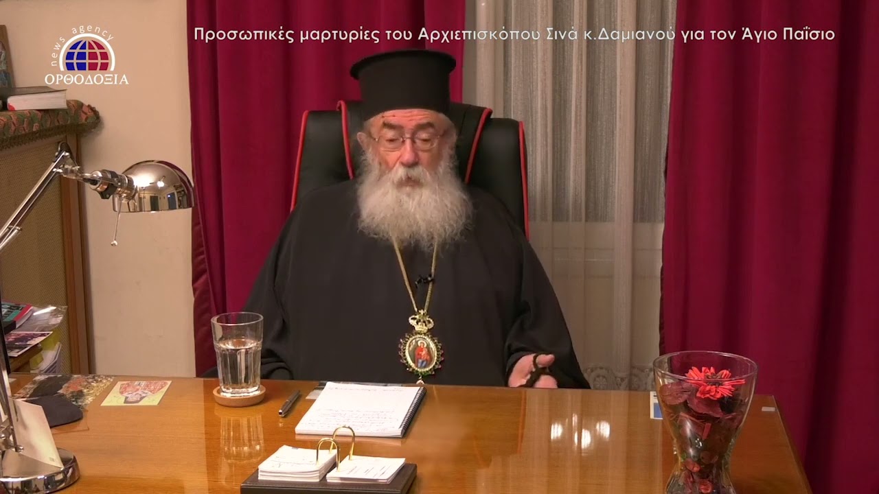 Ο Αρχιεπίσκοπος Σινά, Φαράν και Ραιθώ κ.Δαμιανός μιλάει για την ημέρα που πρωτοσυνάντησε τον Άγιο Παΐσιο στο Μοναστήρι στο Στόμιο της Κόνιτσας. Τονίζει ότι ο Γέροντας Παΐσιος είχε προσευχηθεί για να φύγει από το Στόμιο και να έρθει στο Σινά.