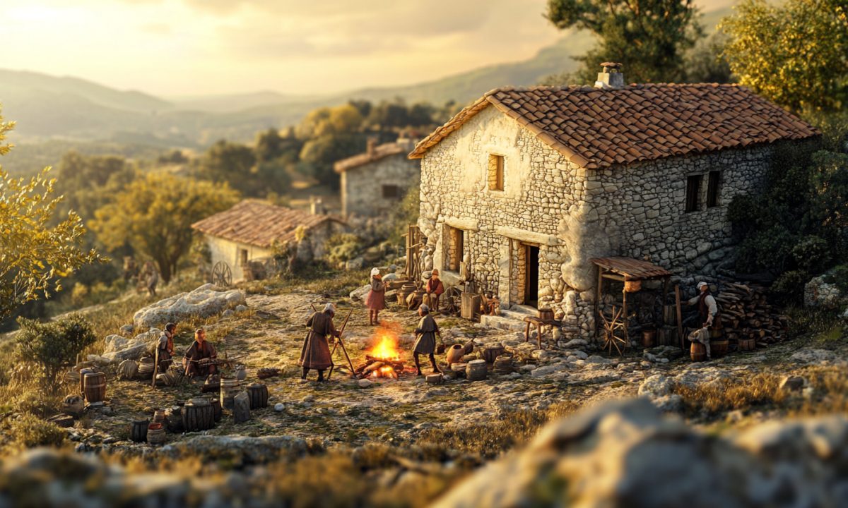 Η ημέρα ενός Έλληνα και μιας Ελληνίδας το 1625 ξεκινούσε με το πρώτο φως του ήλιου. Ο ήχος από τα ζώα που ξυπνούσαν — κότες που κακάριζαν και κατσίκια που βέλαζαν — γέμιζε τον αέρα. Η οικογένεια έμενε σε ένα μικρό πέτρινο σπίτι με μια ξύλινη σκεπή και ένα τζάκι στο κέντρο, όπου από βραδύς σιγοέβραζε μια κατσαρόλα με φαγητό.